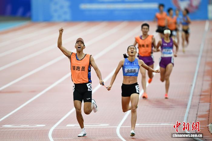 12月13日,齐邦第10两届残徐人疏通会暨第9届特等奥林匹克行动会田径名目正在位于广州的广东奥林匹克体育主旨持续启铺,正在男子800米T12级绝赛中俞圆圆夺冠。图为俞圆圆(左1)战发跑员冲刺止境时握拳庆贺。中新社记者 旧楚白 摄